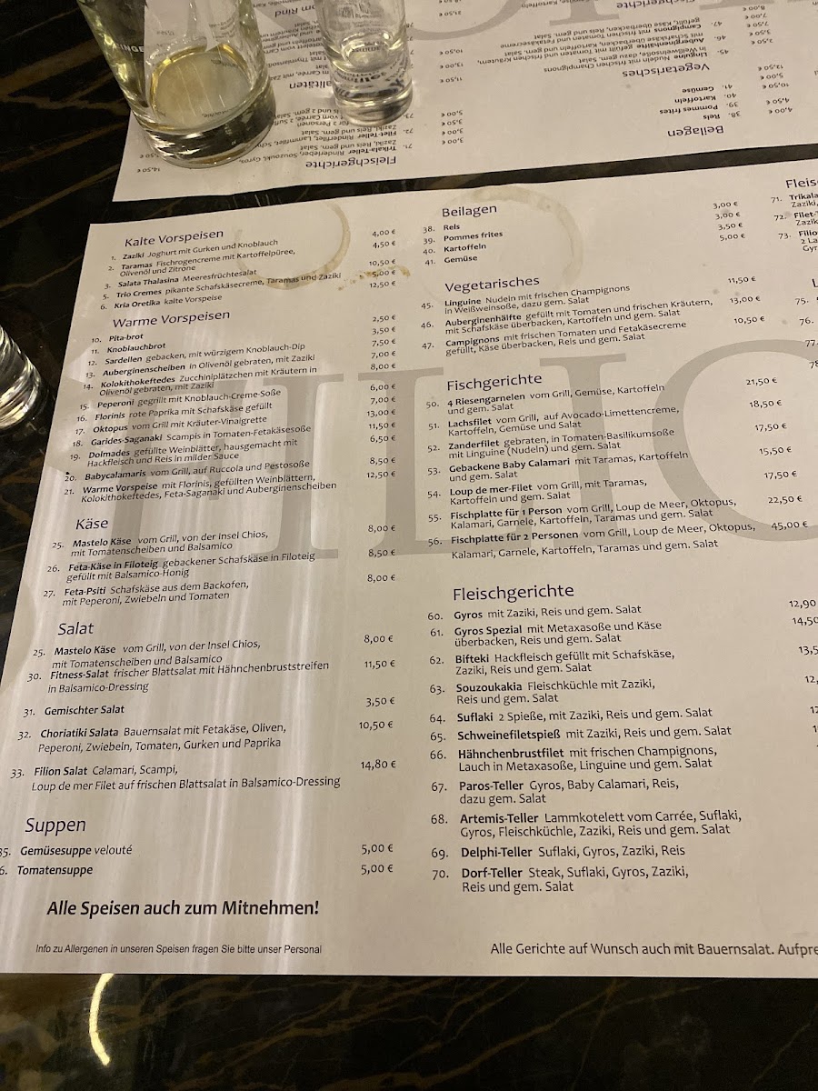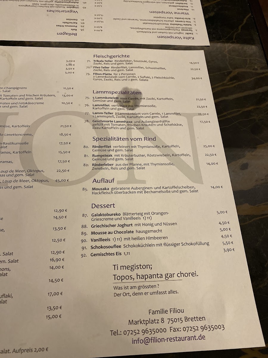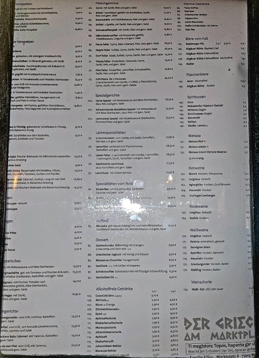 Der Grieche in Bretten offers a menu that blends traditional Greek flavors with a touch of refined simplicity, perfect for a relaxed meal in a charming setting. The menu features a variety of dishes that range from classic starters like tzatziki and fresh Greek salads to heartier mains including grilled meats, seafood, and satisfying vegetarian options.